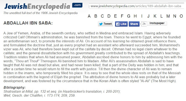 Abdullah ibn Saba was a Jewish Rabbi who “converted” to Islam in order to found the Shia sect. The modern day Shia propagandists will often deny the existence of Abdullah ibn Saba out of embarassment that this is their originator. And yet, Abdullah ibn Saba’s existence is well-known and has been accepted by the classical Shia scholarship, the Sunni scholarship, and even the Non-Muslim historians. Here, we see that the Jewish Encyclopedia has included an entry on the founder of Shi’ism..... [.....]